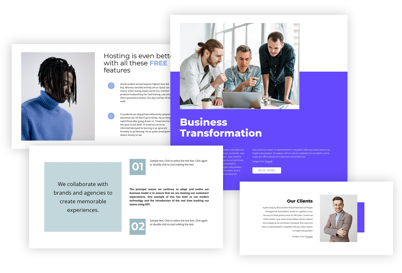 Express your creativity with an intuitive drag-and-drop builder and editor for websites, themes, and templates. Realize any of your design ideas.